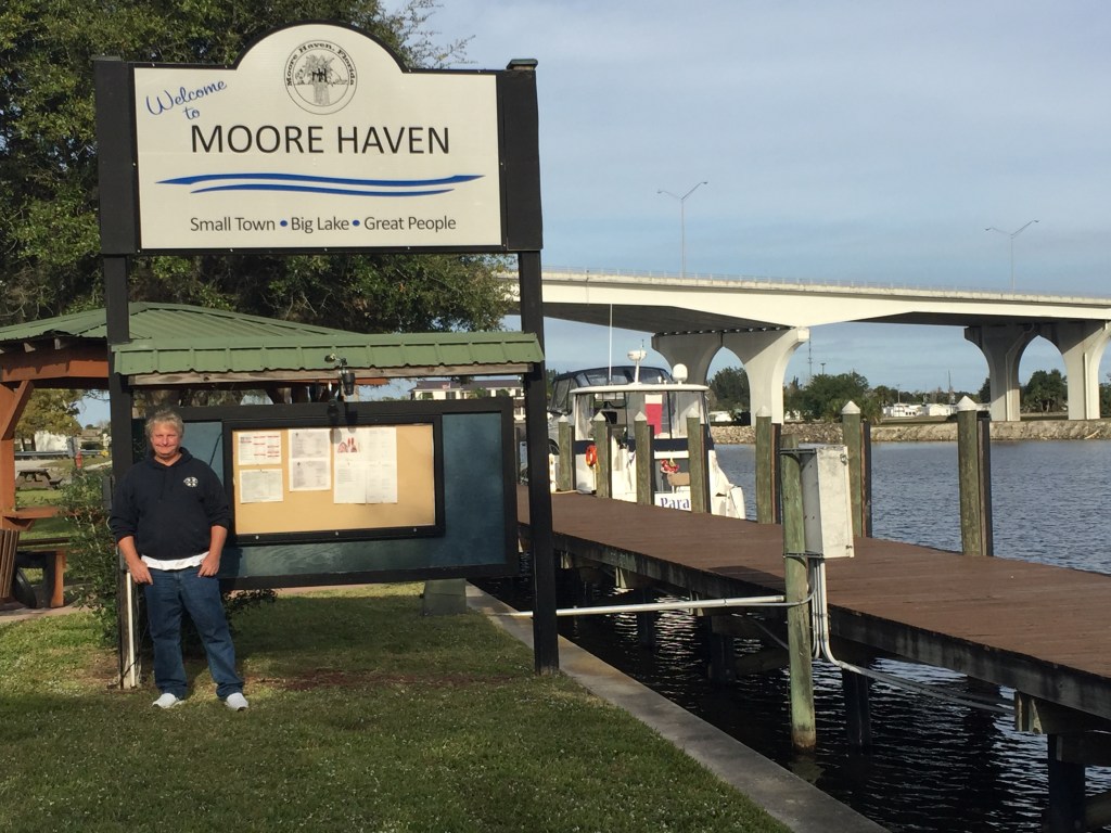 After two locks and one bridge we arrived at Moore Haven. This time we went to Anglers Grill and Bar and had the steak. It was great two huge steaks and we had enough to take home for a second meal. On the way to dinner we stopped by a marina that is just next to the City Docks. The owner leases it from the city and charges the same amount for an over night stay. While there we bought a beer and the owner showed us an old 1957 fishing reel that someone was throwing away. It still worked and looks pretty cool.
