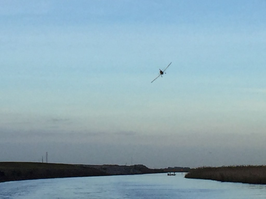 Next morning we pushed off at sunrise and got through the lock first thing. On our way up the canal to the lake we noticed two airplane diving down and then going up into the sky. We found out that they were spraying something on the fields around the lake.