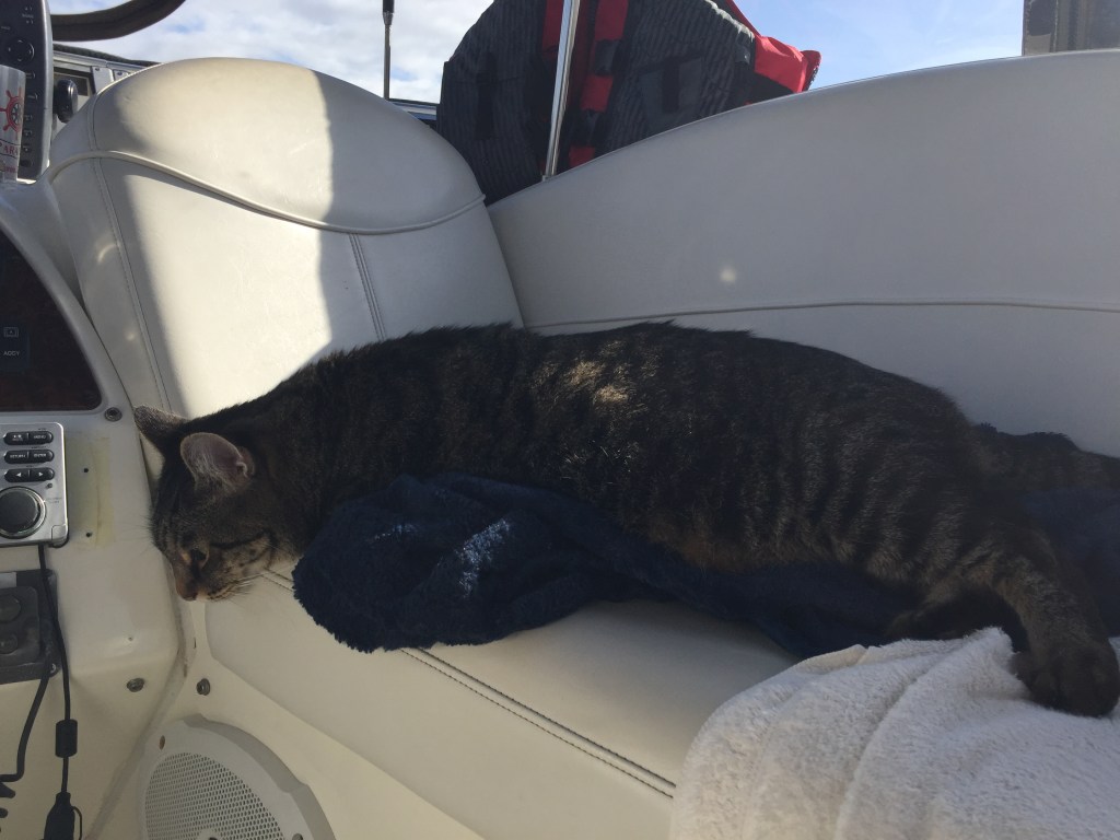 Going across the lake was not too bumpy but Boner felt it and did not feel very good. On the other side of the lake, we found the Port Mayaca Lock open and we only had to pass through. The canal was calm and it was a nice ride.
