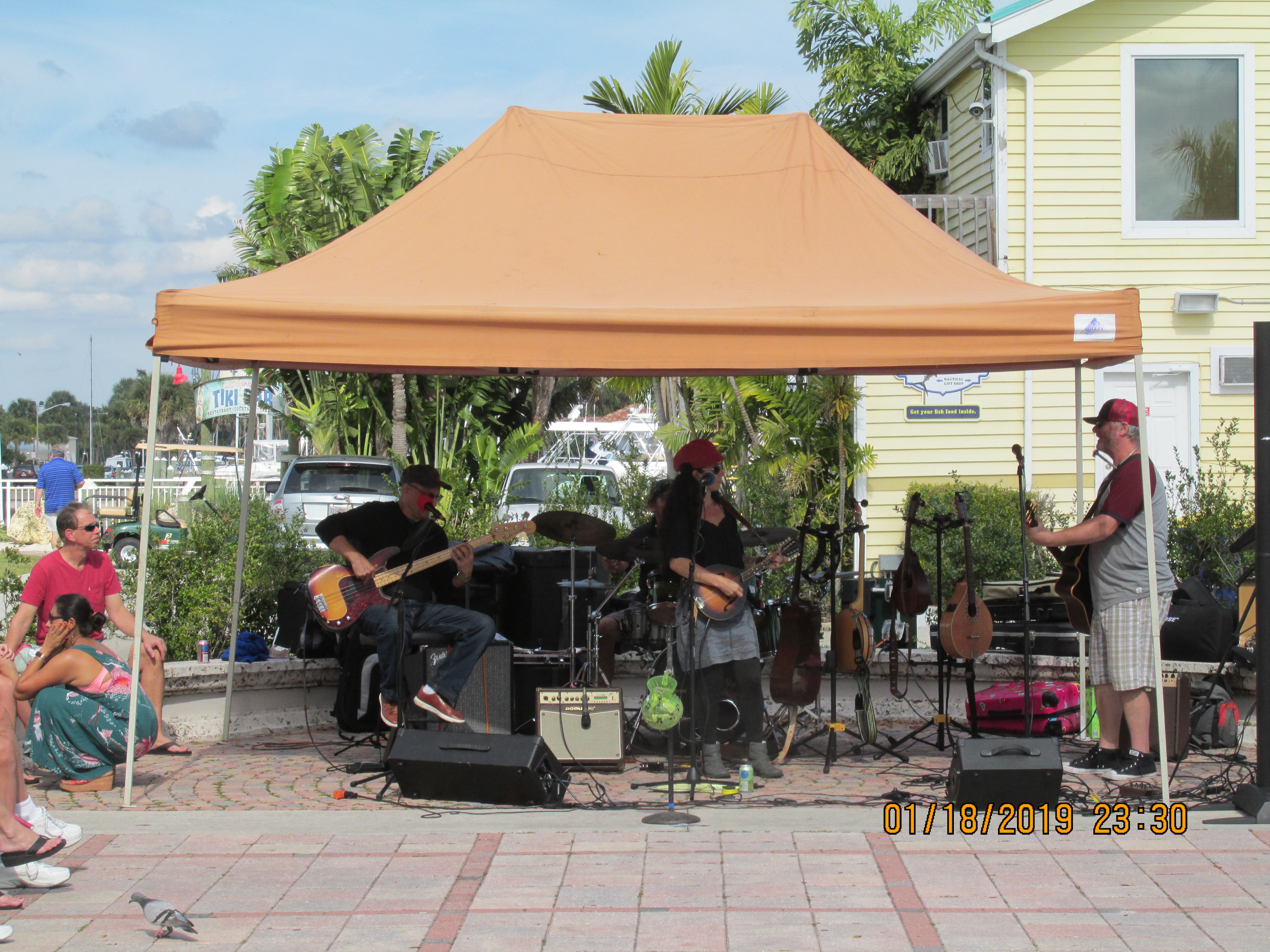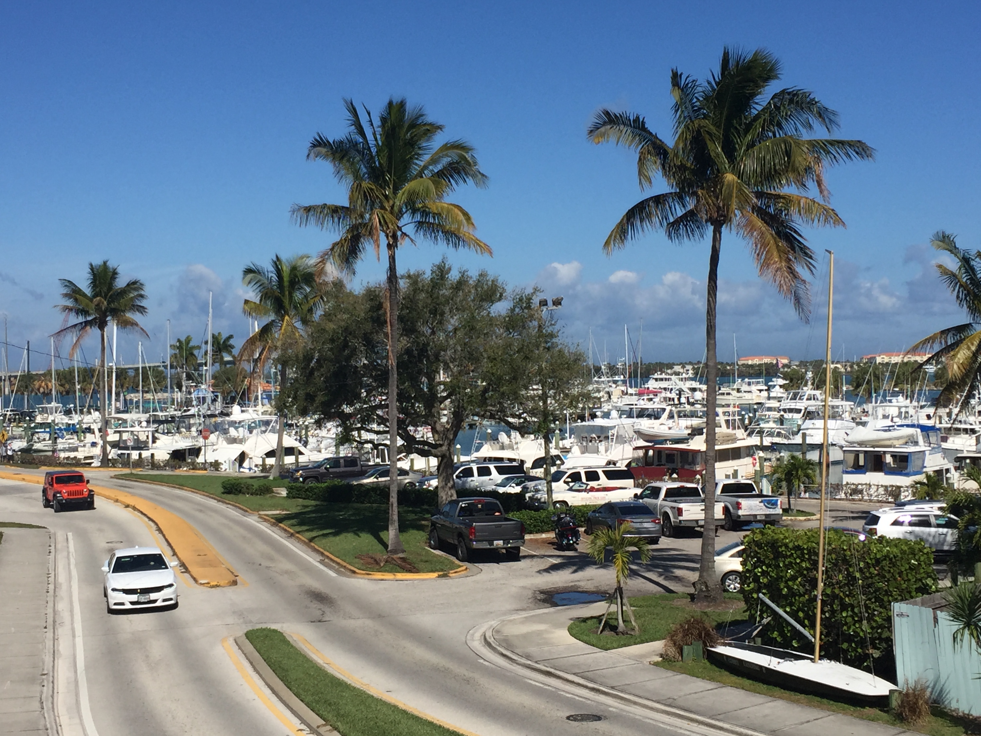 We were tucked away on the fixed docks and the back of our boat was right on the sidewalk that faced Indian River Road. The front of the boat faced the fuel docks, so we could watch boats coming and going. We also got to see many of the locals and visitors passing by the back of the boat – maybe we should say- they got to see us. At times, we felt like we were an exhibit at a zoo, especially when Boner was on the upper deck.