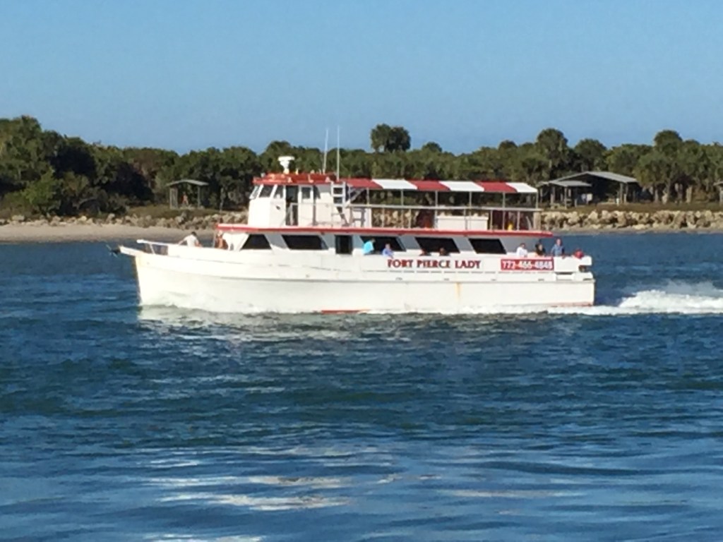 We watched a fishing boat called the “Fort Pierce Lady” come and go during our stay. We decided that we would go along on a fishing trip with them. It was like “Herd Fishing” the crew herded us like cattle on to the boat and lined us up on either side. It was a nice day, but a bit windy. We went out to the reef about 5 miles out in the Atlantic Ocean. We were surprised by the number of other fishing boats that were also out there. The crew dropped anchor and provided us with fishing poles and bait and we dropped our lines over board. It was a bit crowded so we could not move up or down or to the other side of the boat. The side we were on did not catch anything other than a few bait fish. There were about 20 fish caught on the other side of the boat. Even so, it was a nice boat ride and we met a couple nice people on the way.