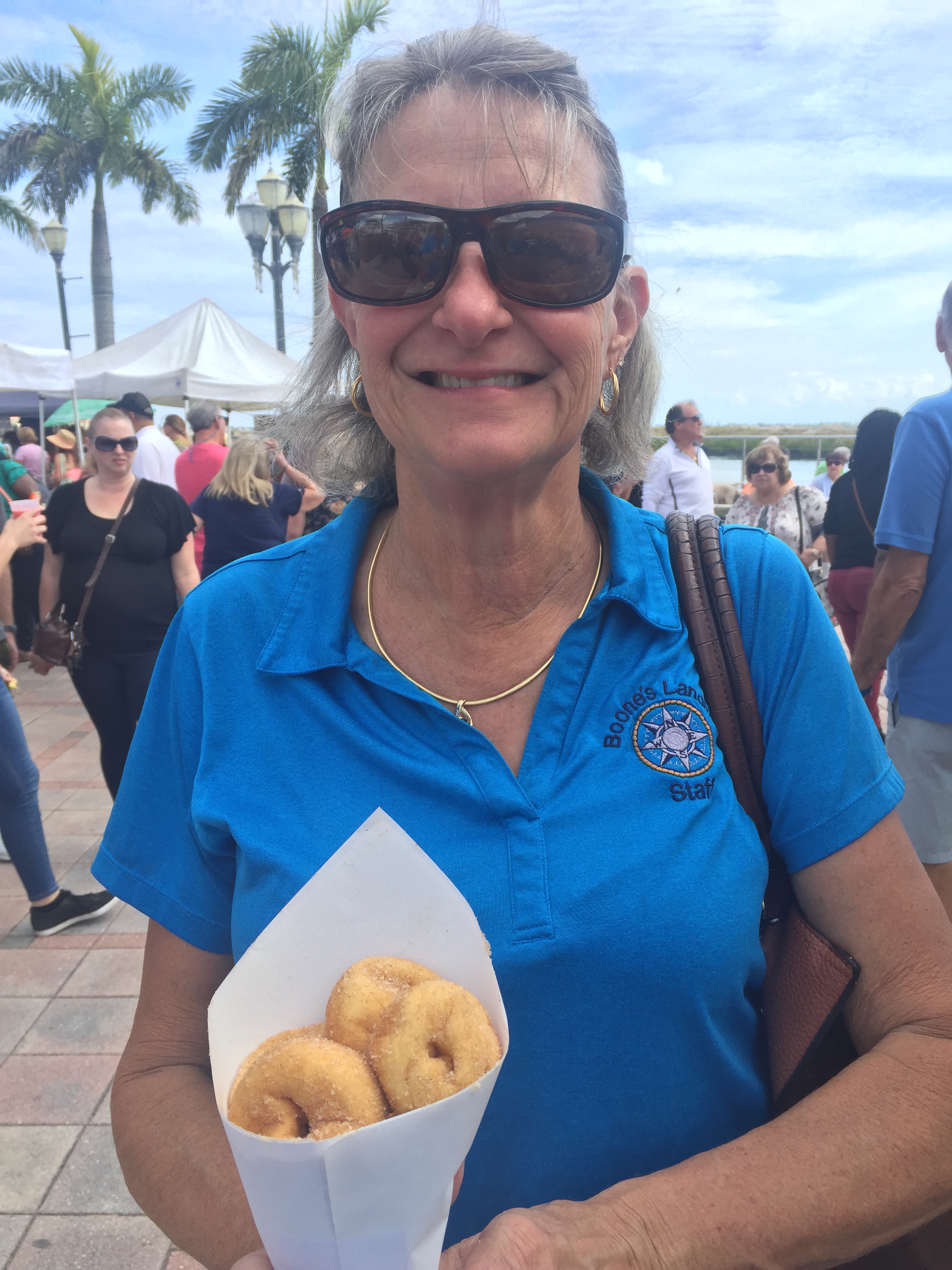 Every Saturday they have a Farmer’s Market. There are many craft and food vendors. They also have a band that plays from 8AM – 12 PM. Our favorite spot was the Cider Donut tent. They made bite size donuts covered with sugar and placed in a “Walk Around” cone. This became a routine for Saturday mornings. We would make coffee and then go get a Walk Around cone of donuts!