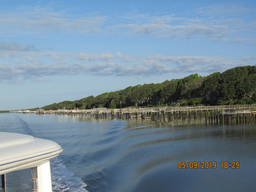 We left Ocean Isle Marina first thing in the AM. The area on the ICW had lots of homes with docks to begin with then changed to shrimp boats and quaint towns.
