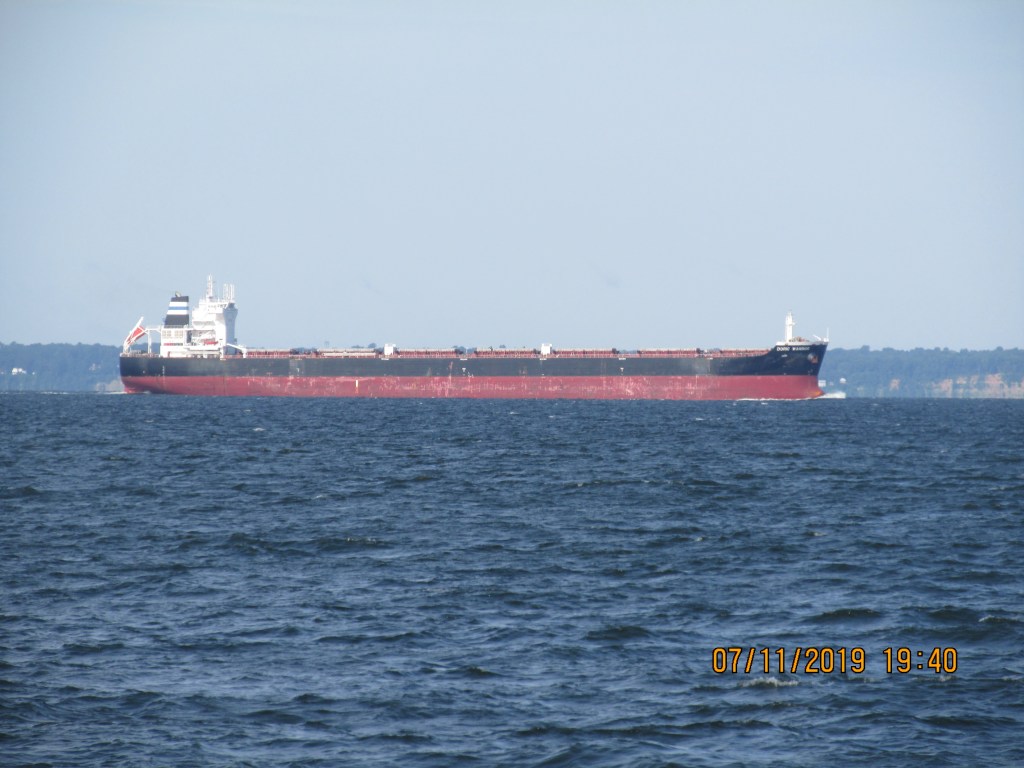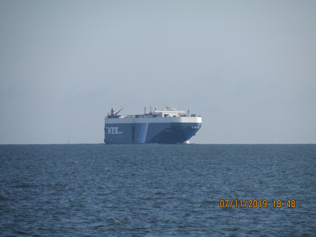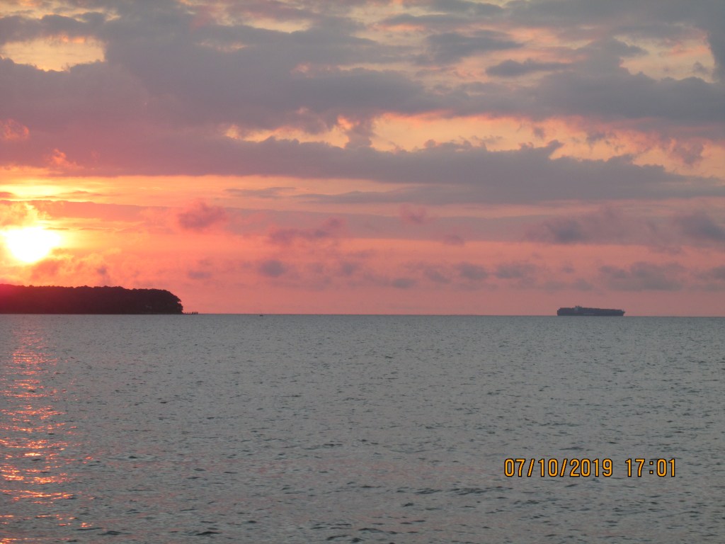 Sunday was another good weather day. We pushed off early and headed south on the Delaware River. We briefly met another looper boat Desiderata as we moved out from the dock. They were headed south also. Winds were less than 8 mph and the waves were less than one foot. We passed the Salem Nuclear Power Plant an hour into our trip. There were these lighthouses that chimed a long foggy moan, Also had commercial ships that we needed to move out of the channel for. We were headed to Cape May, NJ. There is a canal that we needed to go into, but we had to wait for a Ferry that carries cars and people to Delaware to come out of the narrow canal before we went in. The boat traffic was heavy since it was a nice day and on the weekend.