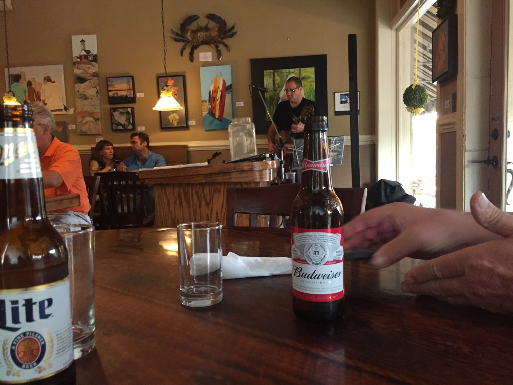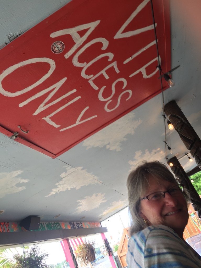 We then went exploring and found…. A Tiki Bar!!! It was a neat place to hang out for a few cold ones! We tried a couple restaurant. One for appetizers Island Hideaway. It was very good, but we noticed that a storm was brewing so we wanted to be closer to the boat. There was a restaurant right at the dock, so we returned to the boat and closed the windows then went in and had dinner. A new waitress did not submit our order, so we waited extra long to get our food. We did not mind since it began to rain really hard and they gave us each a free drink and a dessert.
