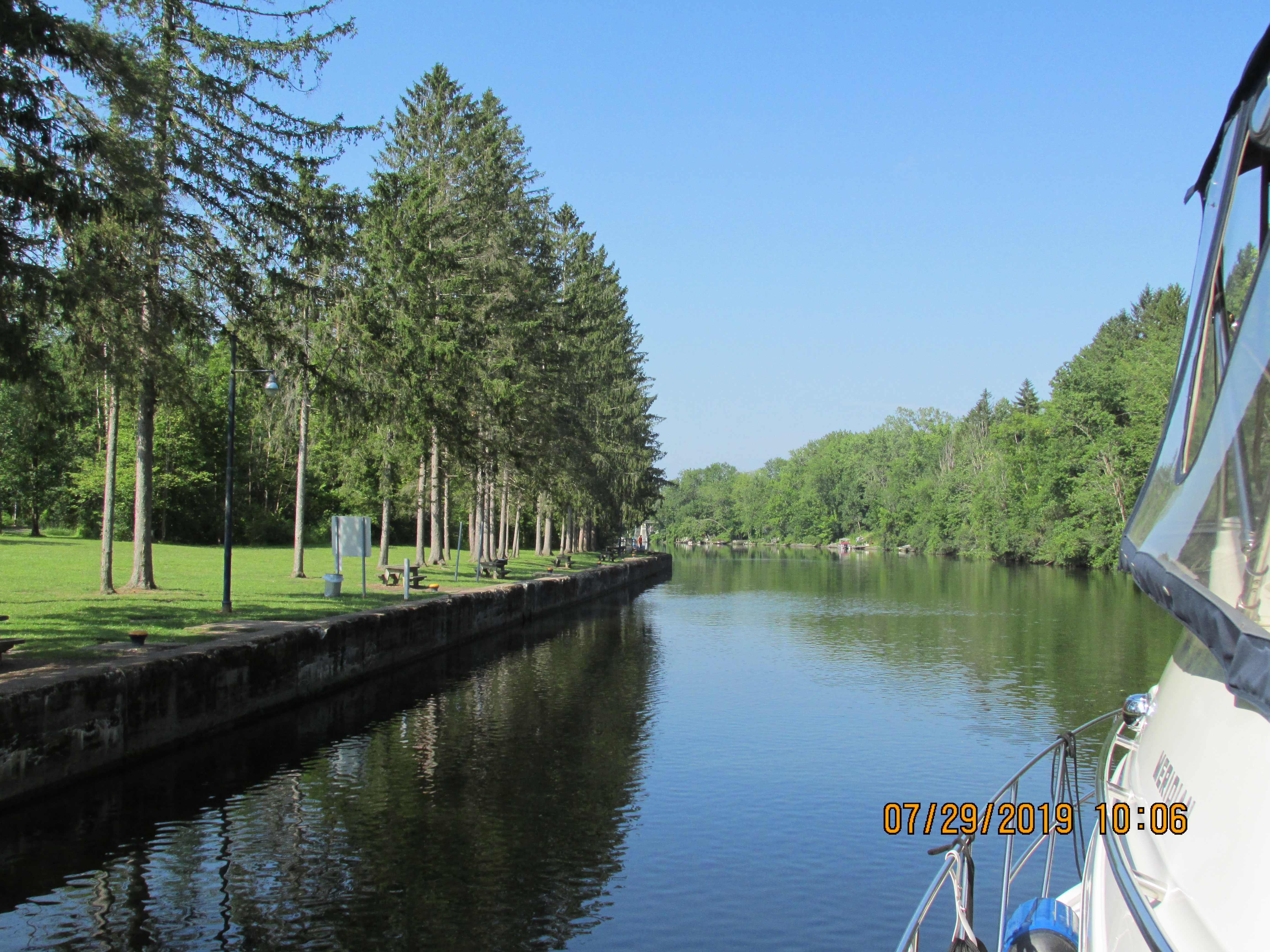We learned that Bubba and Anne from “Getaweigh” was in the next marina up the canal. We decided to move and meet up with them. It was a nice sunny morning and we headed out and through the last lock of the Erie canal that we will go through. The Erie Canal is 540 miles long but we are not going to travel the full length because we want to travel via Canada and the fact that there is a 15 ft fixed bridge that we cannot get under if we went the full length.