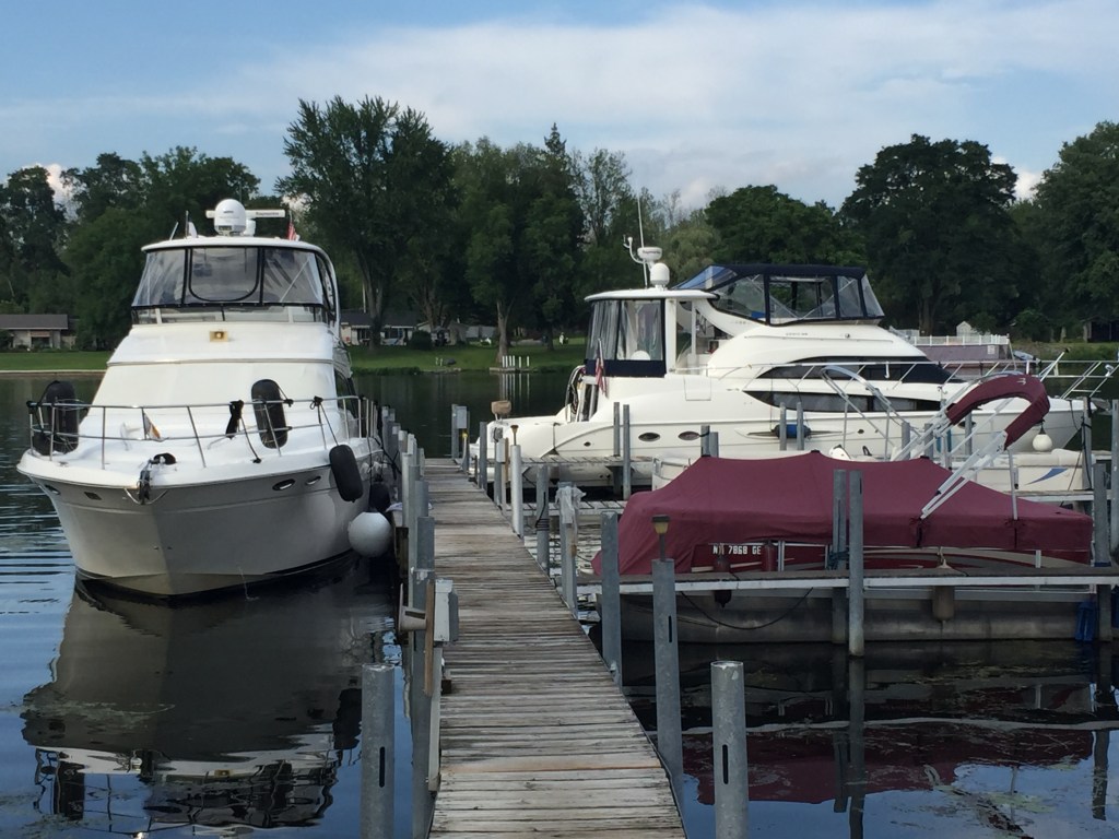 We were watching the weather for crossing Lake Ontario. It was still iffy and there was a weekend celebration called Harborfest in Oswego so boat slips were limited. With the lake water being high due to the huge amounts of rain they have recieved this year, some marinas directly on the lake did not have electric.