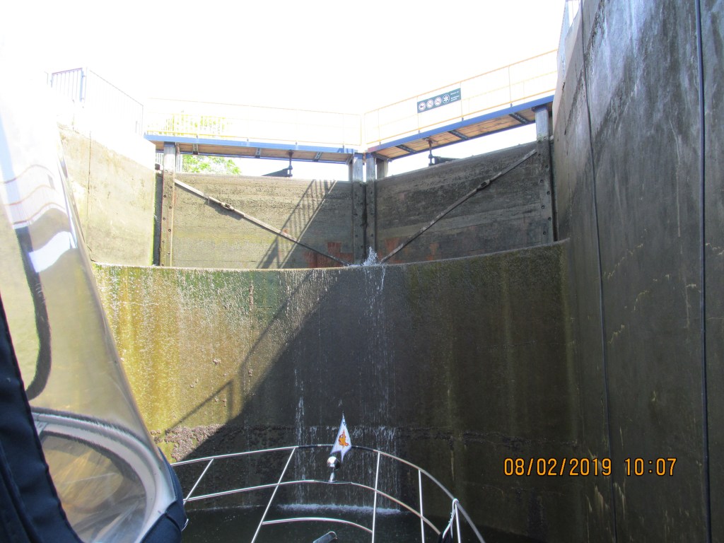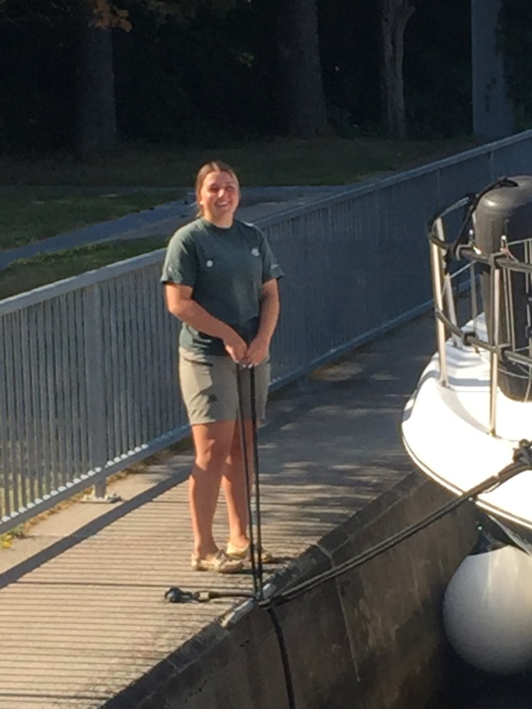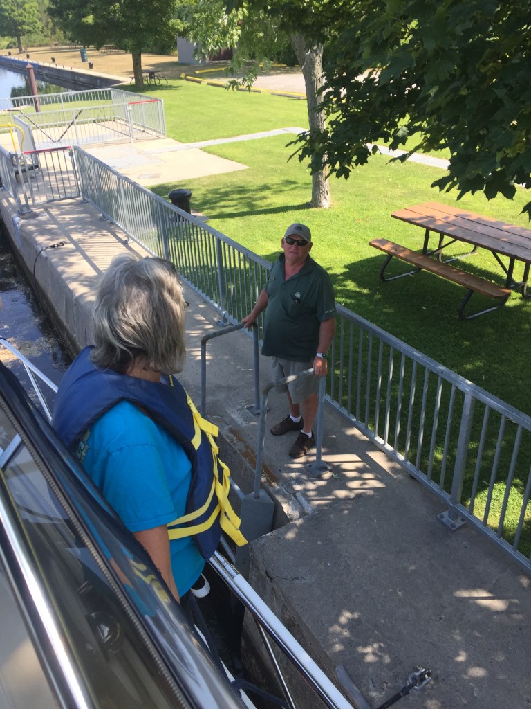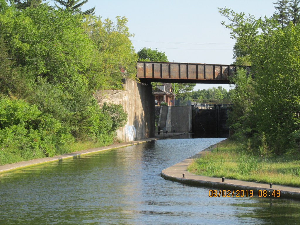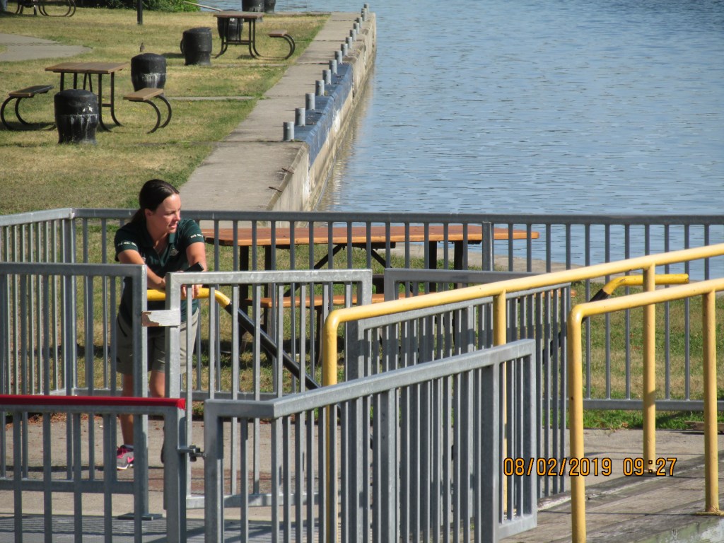 We reached the first lock early. They do not open until 9AM but we wanted to be first so we could make sure we could complete the days travel plans. The first lock took longer than the other because we needed to purchase a pass for the canal and they did a great job explaining how the canal and lock systems work. The locks are managed by the Canada Park system and the staff are mostly college kids working for the summer. The locks are opened manually which was interesting to watch. One down – 11 more to go.