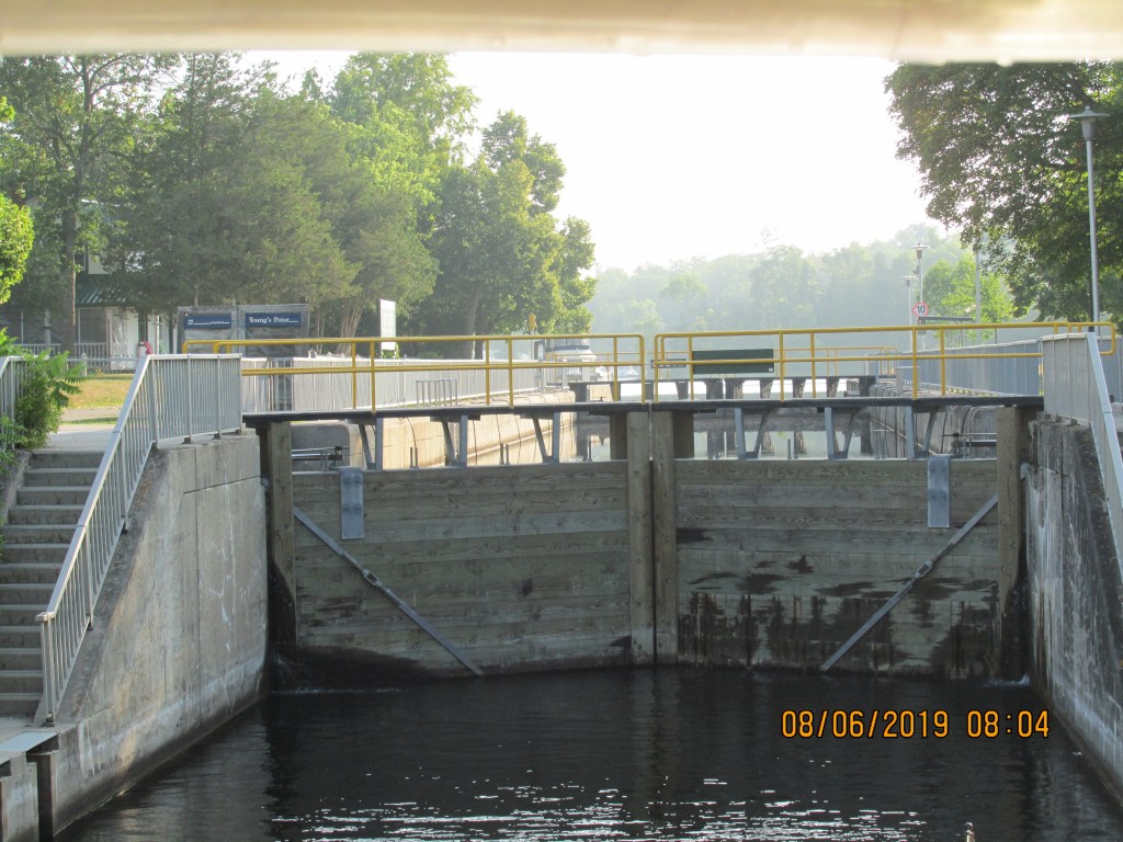 We left early from the marina to travel to the lock (#27) to make sure we were first to go through after following all the boats we did yesterday. We were at the lock at 8AM which is an hour before they open. We decided to travel through 4 locks and 37 miles.
