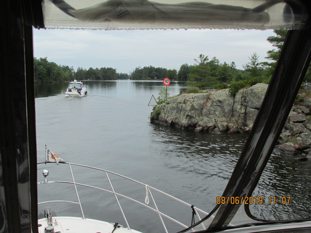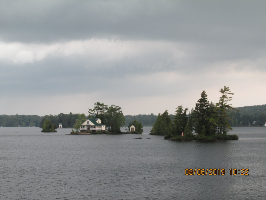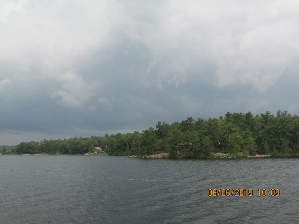 It was nice day to begin with, but a storm was coming our way and it got to us just when we entered a narrow channel of the canal called “Hells Gate” The wind made it difficult to keep in the channel but we made it. The land is not sandy up here like in the south so if you run aground you hit rocks!