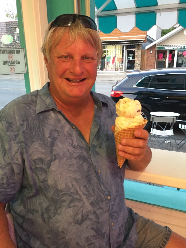 We ended up at Bobcaygeon – at Gordon’s Marina. The lock wall was full so we were glad we go in at the marina. The town was small and appeared to have one family who ran all the businesses, the Bigley’s. We ate out and of course got some ice cream! It was delicious!