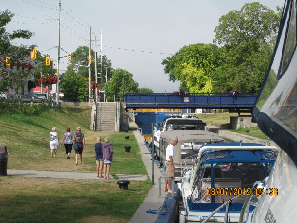 After our stay at Bobcaygeon, we had to wait on boats to lock through Lock #32. We could see the boat traffic from the dock we were staying at so we waited for an opening.
