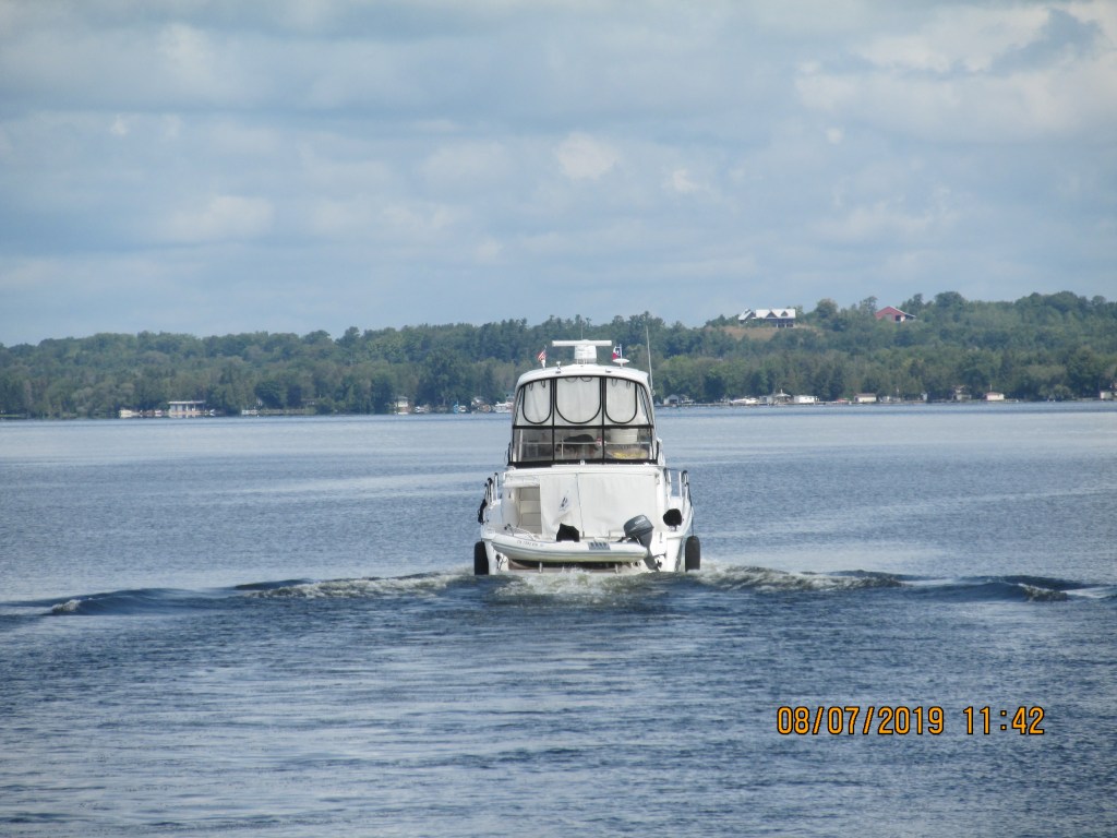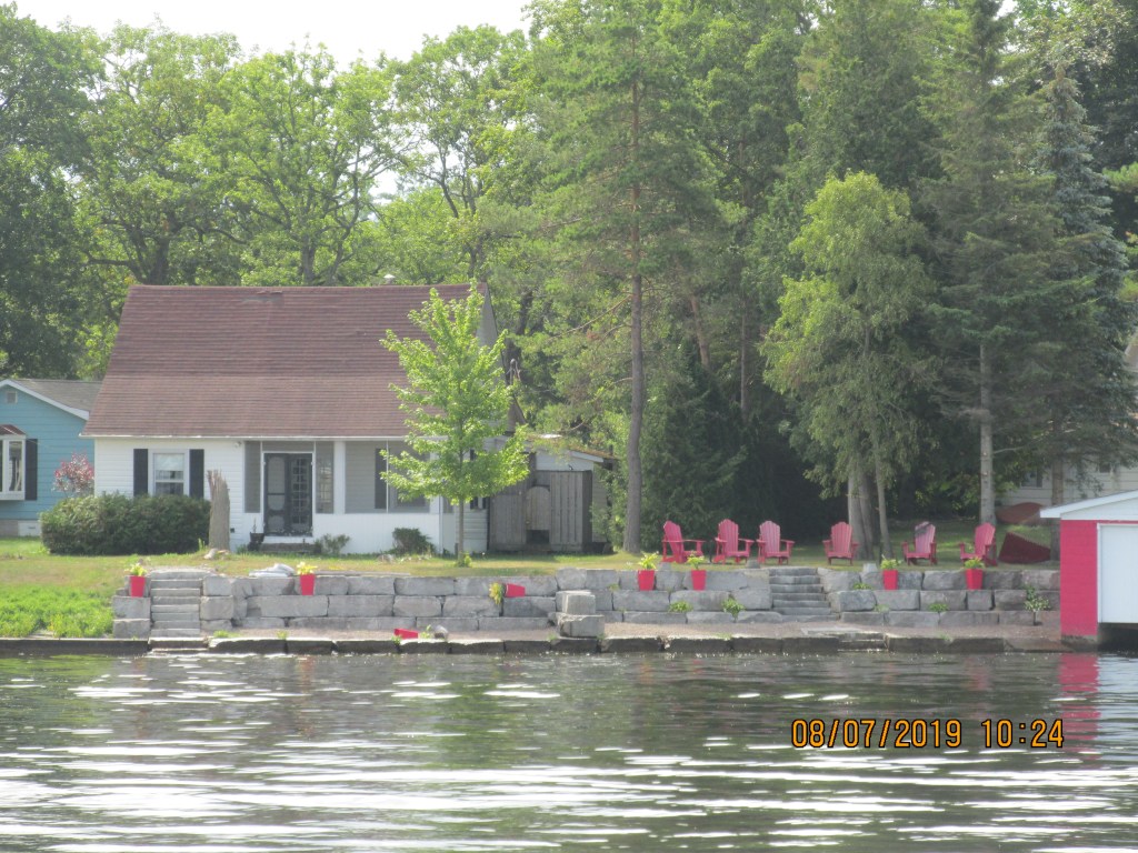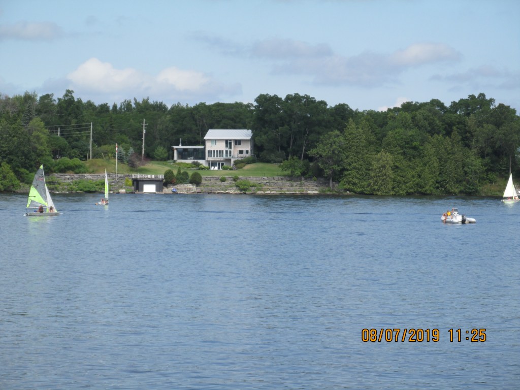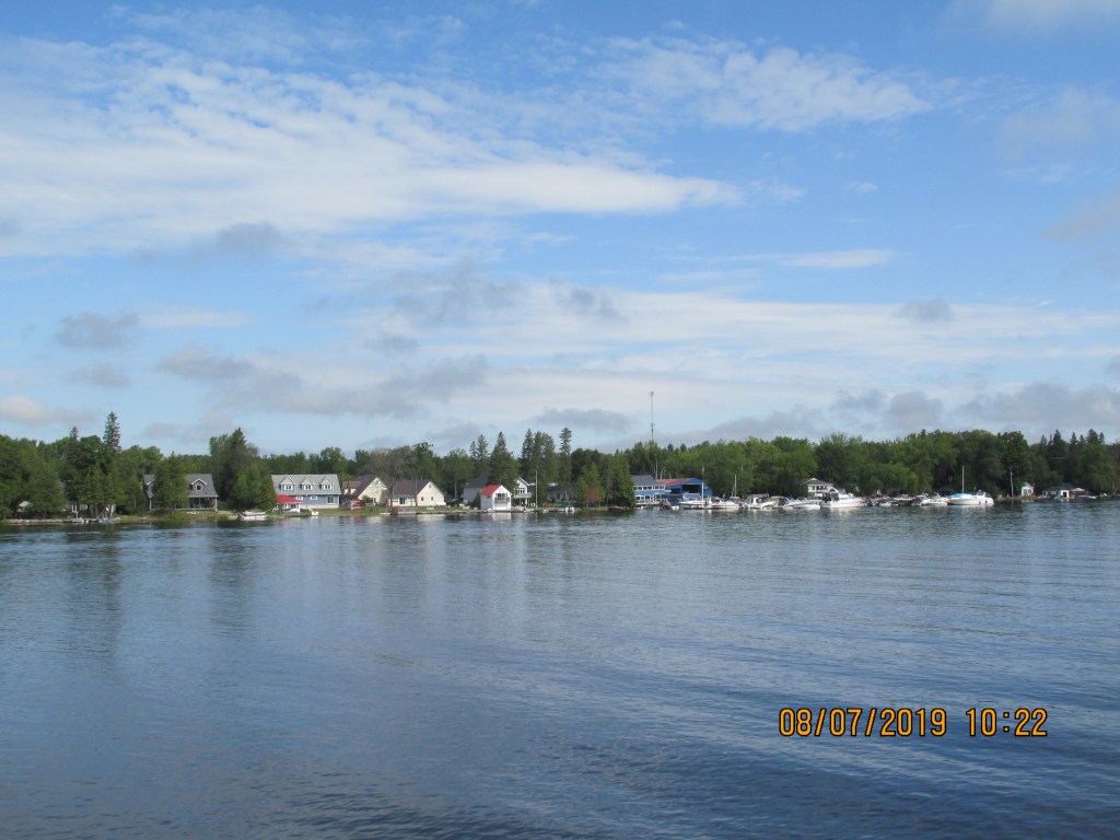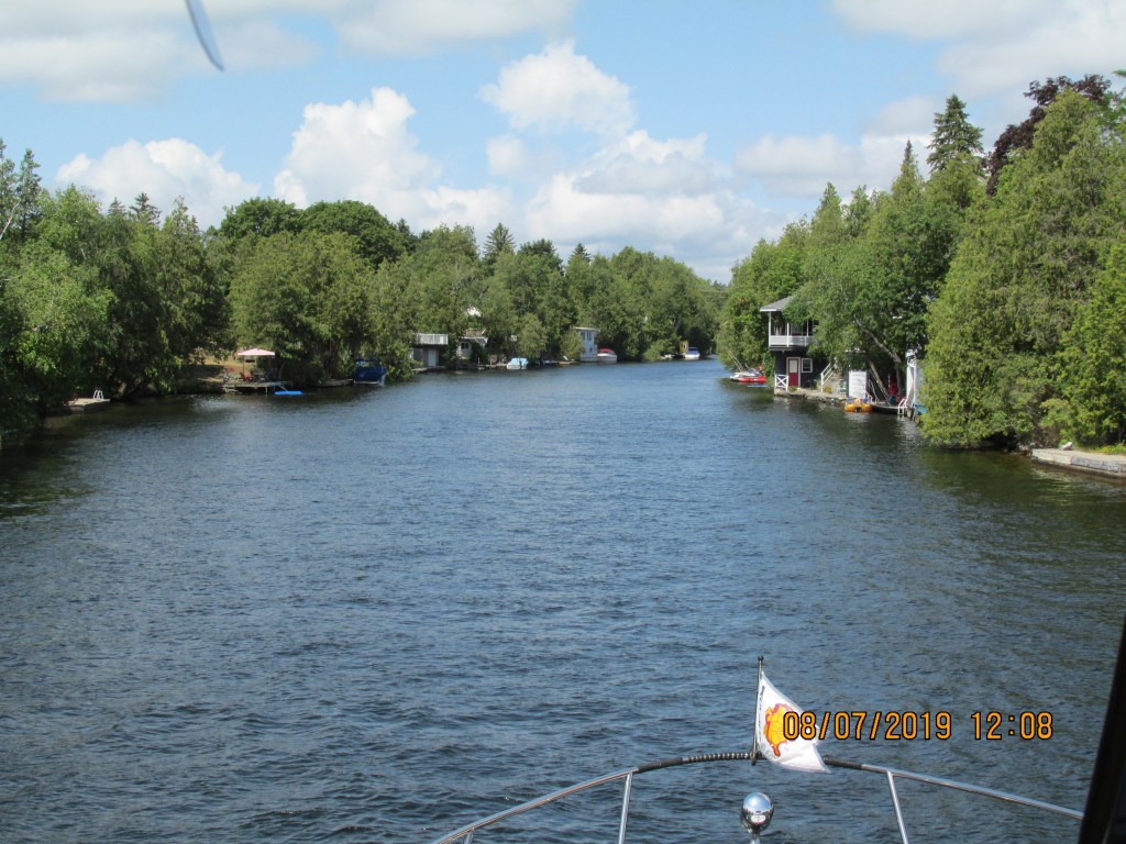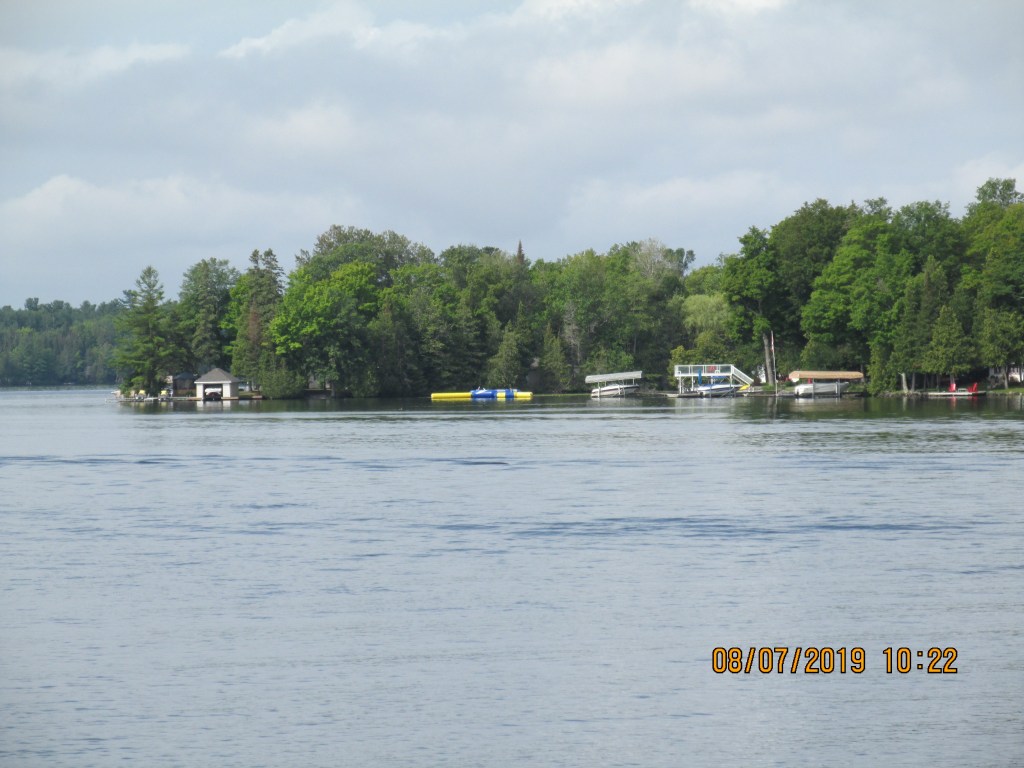 The lock was filling up with smaller boats and we thought we would need to wait for the next lock through but they called us in for the lift. Our buddy boat “Getaweigh” did not make this lock so when we exited the lock we just went slow until they caught up with us on Sturgeon Lake. The lake has a lot of cottages and summer homes.