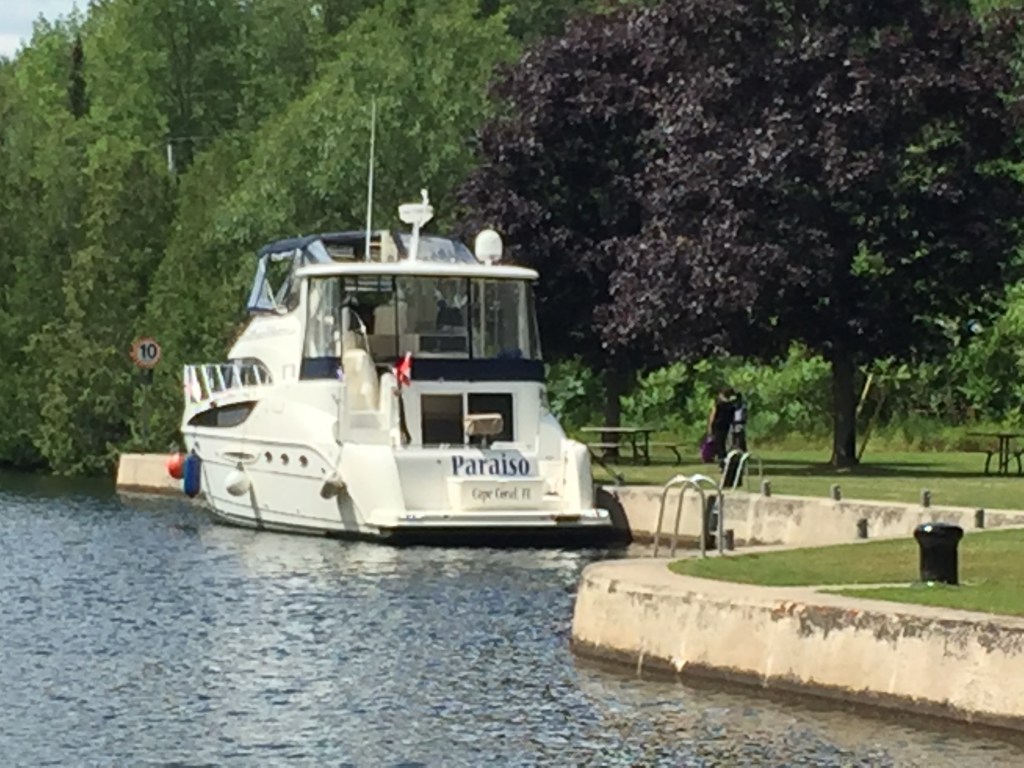 We went through the Fenelon Falls Lock together and we hoped to get a space on the wall so we could get some lunch. There was only one space so “Getaweigh” took that and Chris and I went on to the next lock 4 miles away to try to grab a spot on the wall.