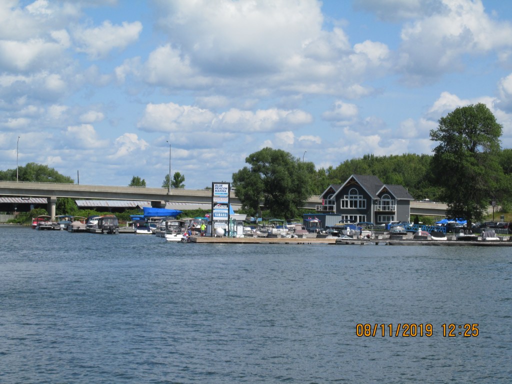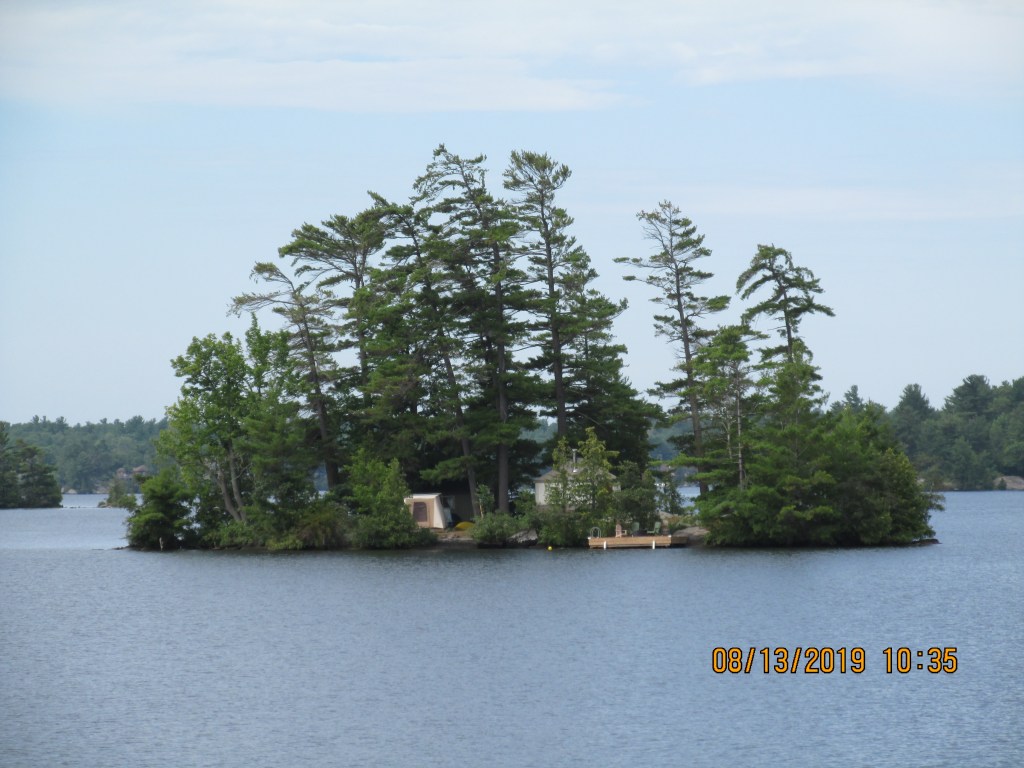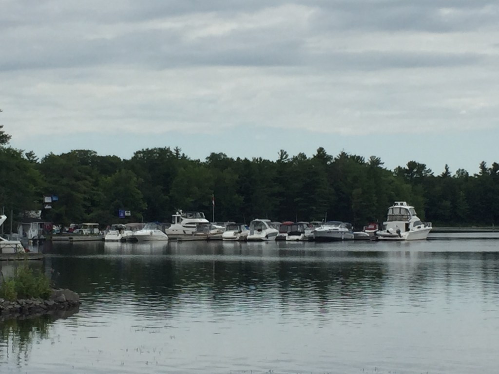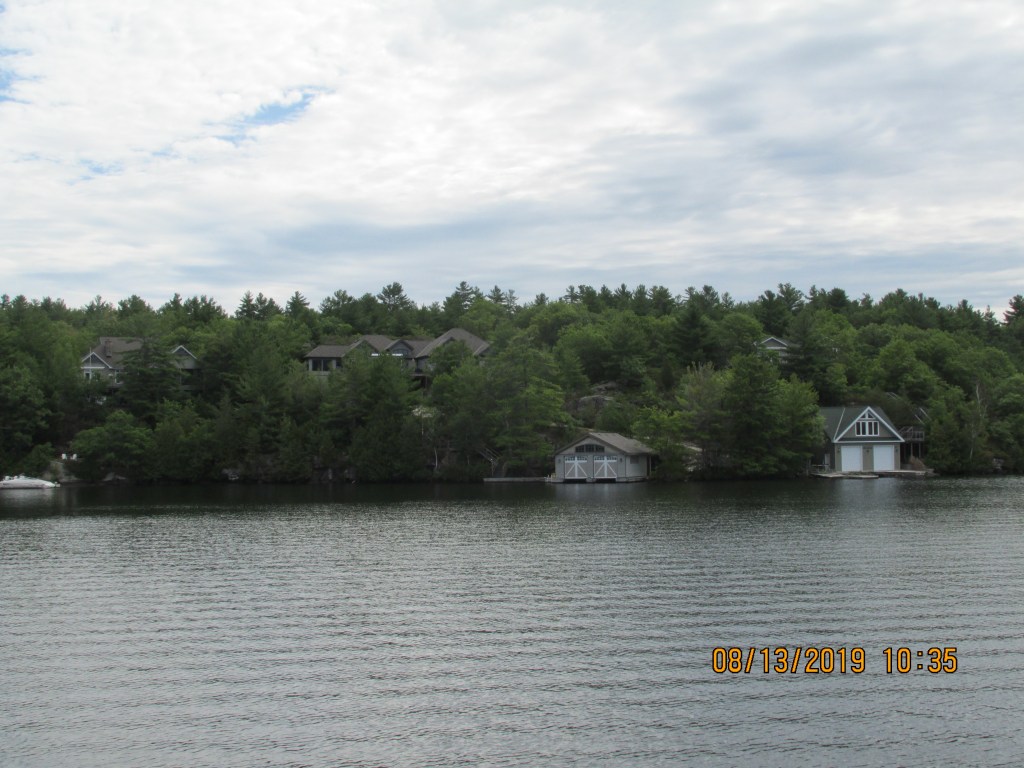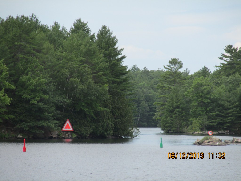 The area we cruised through was nice and green with pine trees. There were many cottages and everyone had docks and boats. Glad it was a Monday so we did not have as much traffic. There were a few narrow areas that we had to take care passing through. We were in the Severn River so the water was deeper here, but you still had to watch out for rocks.