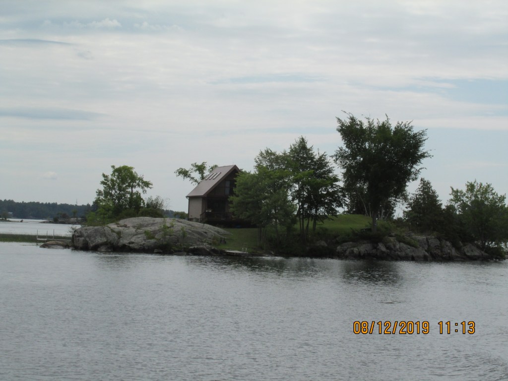 After this we headed to our last lock of the Trent-Servern Waterway – Lock #45. As we followed the waterway, we saw many nice cottages and houses on the rock islands. There were a few narrow areas where we had to dodge a rock that was submerged.