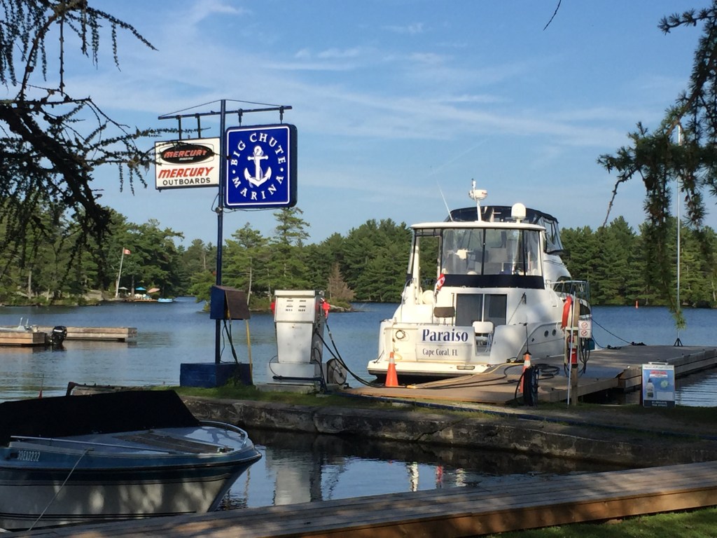 We pulled into the Big Chute Marina to spend the night and to check out the Lock and how it works. We watched a few boats make their way across the lock.