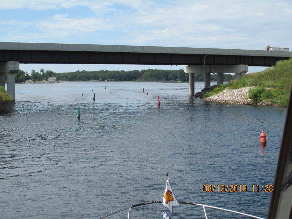 Lock #45 was not very long and both Getaweigh and Paraiso could not fit into it together. We went first and then headed through some narrows into more open water. It was a relief to be in more than 10 ft of water for a change.