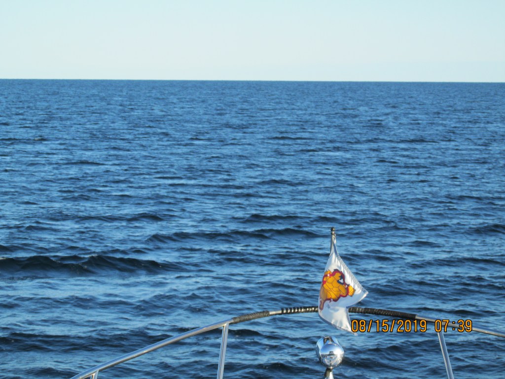 We took off at 6:15AM and enjoyed a beautiful sunrise. The waters were really quite and no waves. We had 85 miles to travel to Rogers City, MI.
