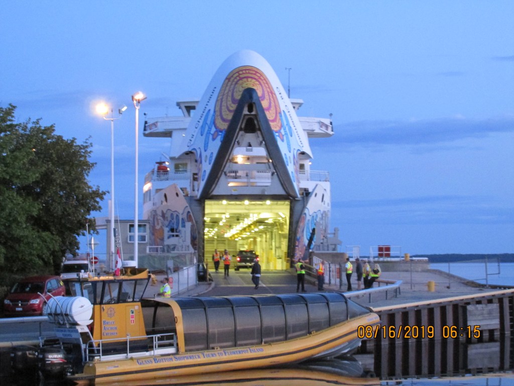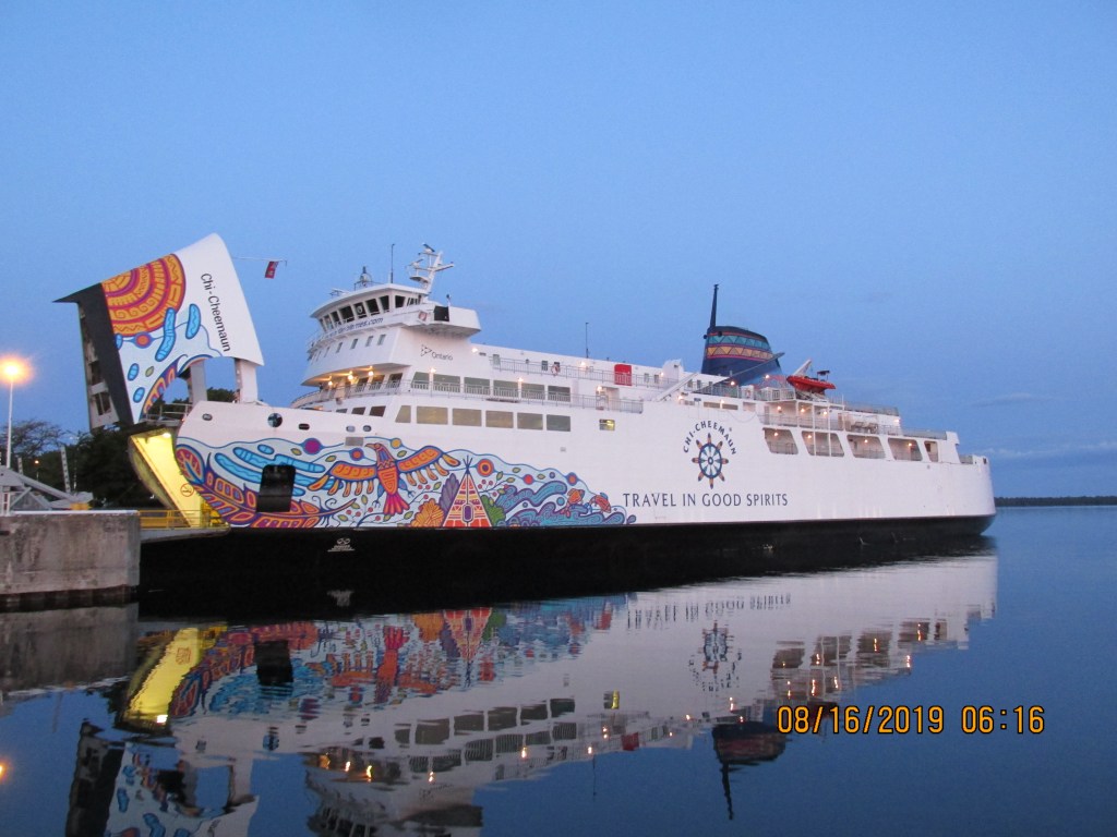 We saw a car ferry on the way out. It travels between the two ends of Georgian Bay near Lake Huron. They were loading cars and people as we left.